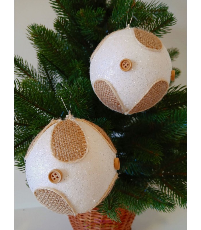 Новорічні кулі білі з декором Ø100мм, ціна за набір 2 шт (SH244)