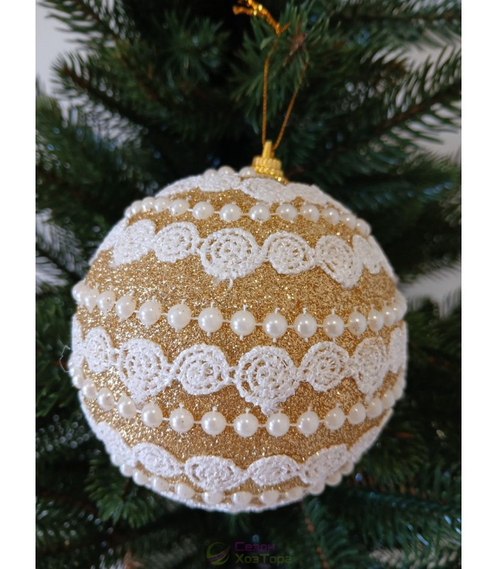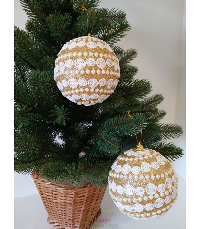 Новорічні кулі золоті з тасьмою Ø100мм, ціна за набір 2 шт (SH210)