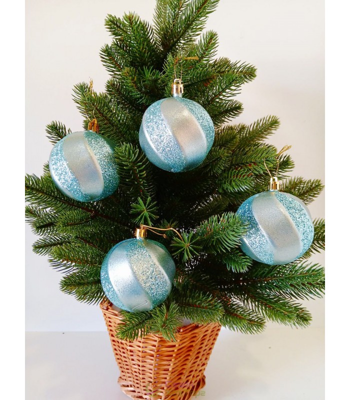 Новорічна куля в блискітках "Хвилька" Ø80мм м'ятна, ціна за набір 4шт