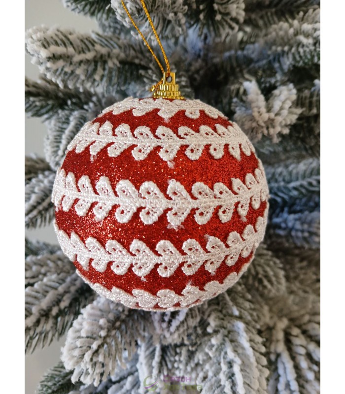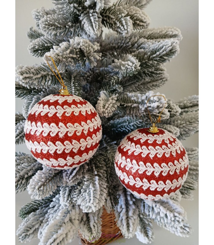 Новорічні кулі червоні зі спіральним візерунком Ø100мм, ціна за набір 2 шт (SH222)