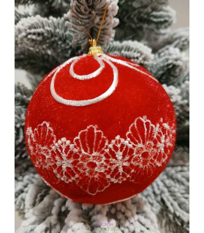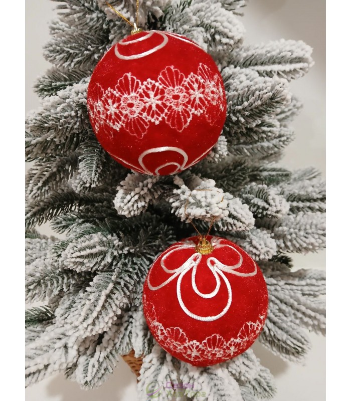 Новорічні кулі червоні оксамит Ø100мм, ціна за набір 2 шт (SH304)