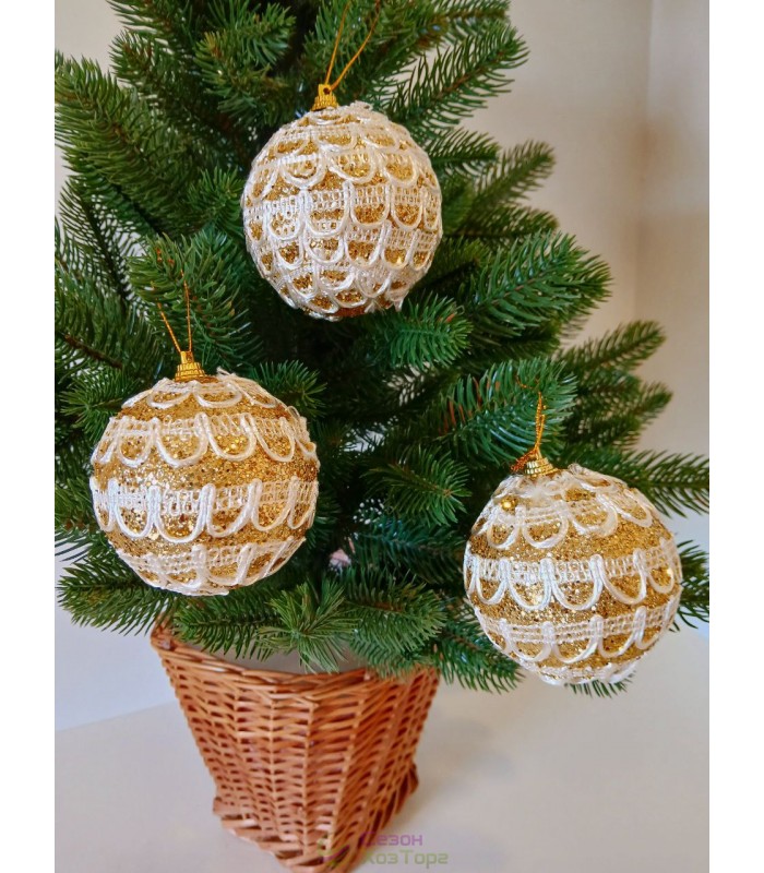 Новорічні кулі золоті з декором Ø80мм, ціна за набір 3 шт (SH245)