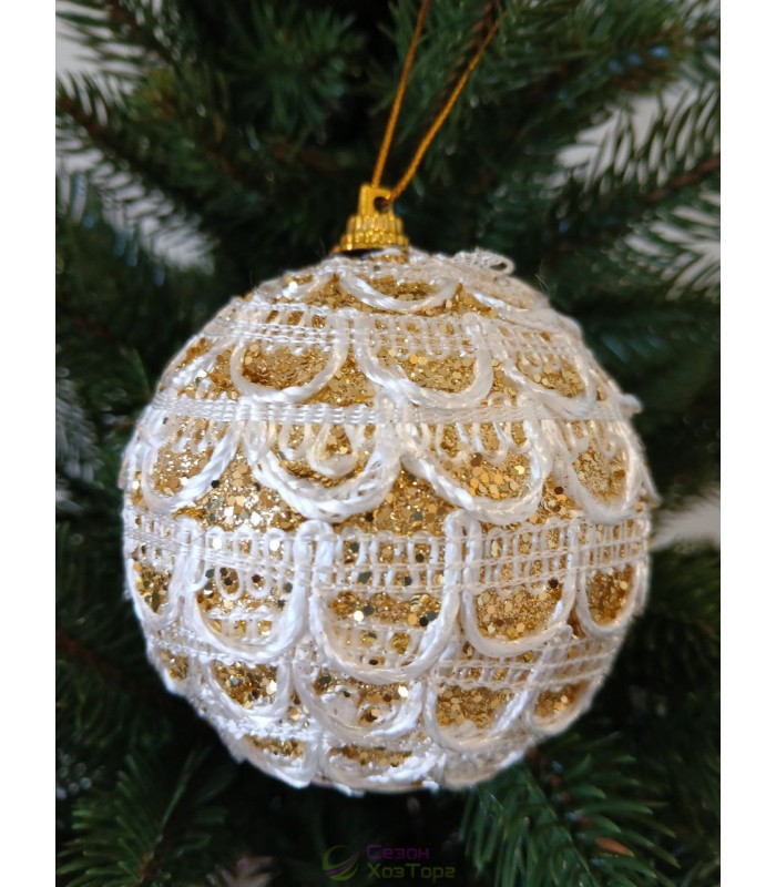 Новорічні кулі білі з декором Ø100мм, ціна за набір 2 шт (SH244)