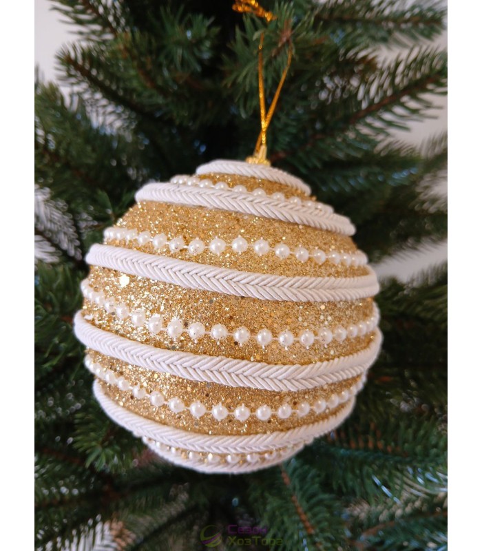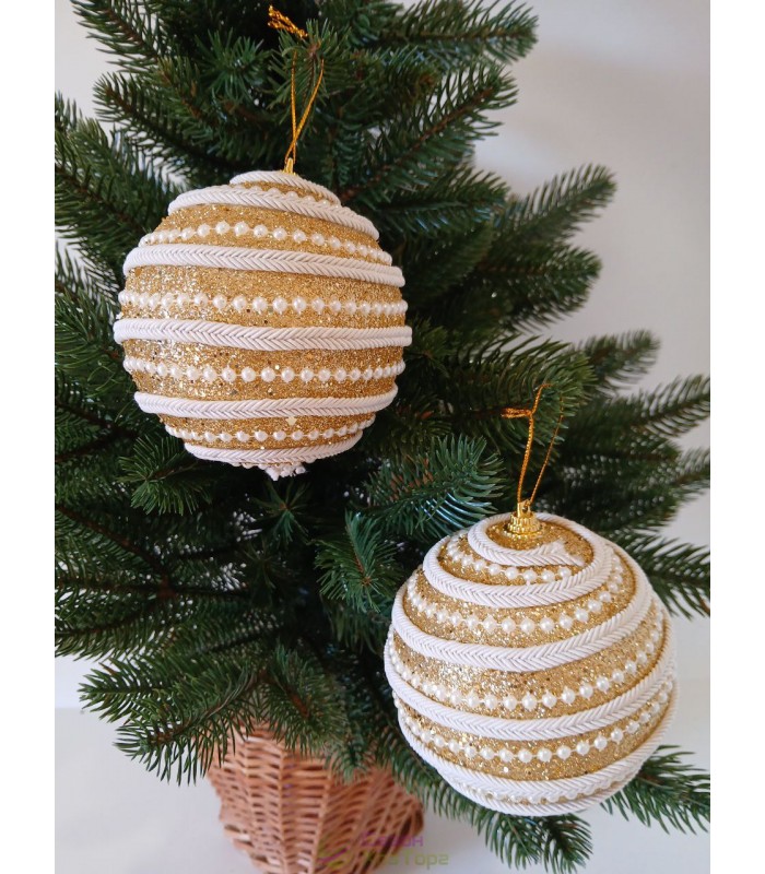 Новорічні кулі золоті з намистинами Ø100мм, ціна за набір 2 шт (SH224)