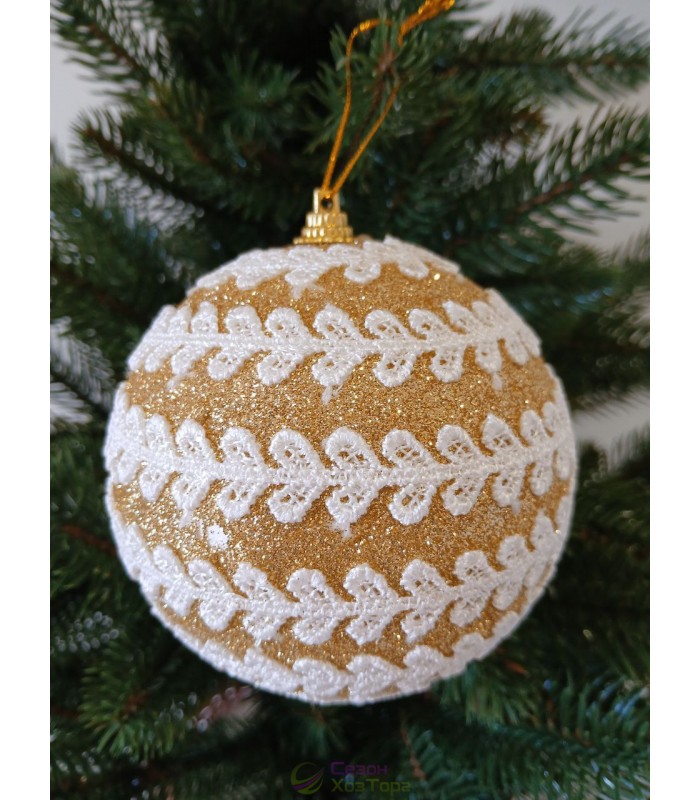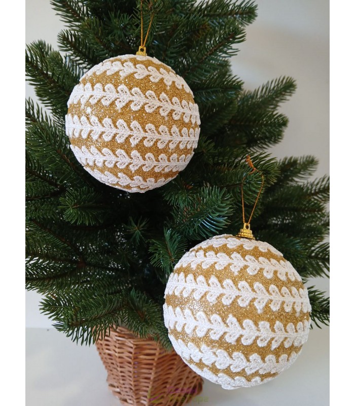 Новорічні кулі золоті в ажурній в'язці Ø100мм, ціна за набір 2 шт (SH256)
