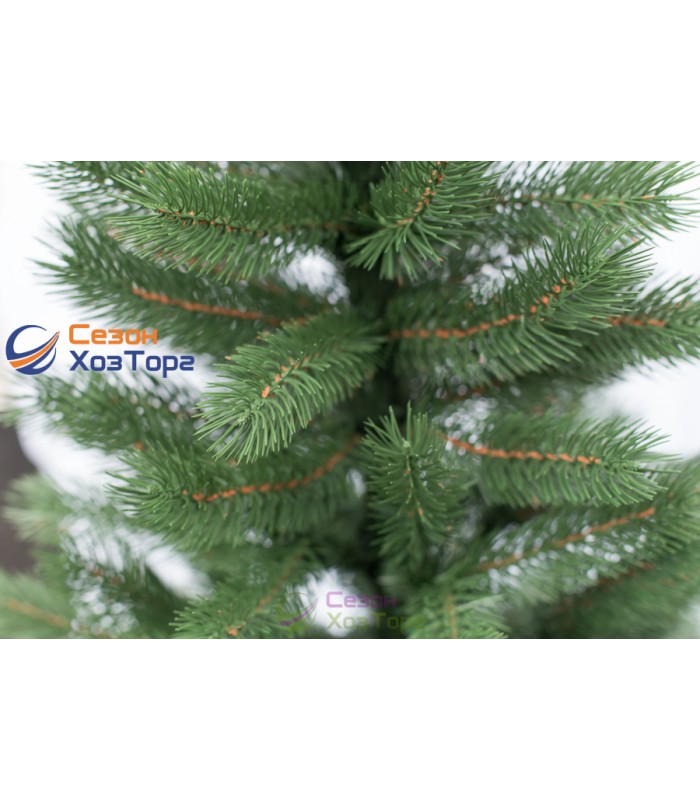 Ялина штучна лита висотою 1,8 м блакитного або зеленого кольору виготовлена відповідно до санітарно-епідеміологічних та гігієнічних вимог до продукції в Україні. Виготовлена з високоякісних матеріалів. Стовбур представлений розбірною трубкою, гілки складаються з дротяного каркаса, який вирізняється високою гнучкістю та міцністю. Голки виготовлені згідно з новими технологіями із пластику, що використовується в медицині та харчовій промисловості, має гіпоалергенність, екологічну чистоту, відсутність канцерогенного впливу на здоров'я людини. Голки характеризуються обтічною формою, м'якістю, гнучкістю, що обумовлено способом виробництва штучної хвої шляхом індивідуального відливання в спеціальній матриці. У комплект входить металева стійка підставка, що дає змогу встановлювати ялину на будь-яку поверхню.