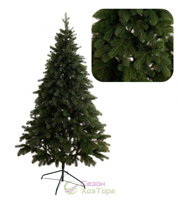 Ялинка штучна лита заввишки 2,1 м блакитного або зеленого кольору виготовлена відповідно до санітарно-епідеміологічних та гігієнічних вимог до продукції в Україні. Виготовлена з високоякісних матеріалів. Стовбур представлений розбірною трубкою, що складається з двох частин, гілки складаються з дротяного каркаса, який вирізняється високою гнучкістю та міцністю. Голки виготовлені згідно з новими технологіями із пластику, що використовується в медицині та харчовій промисловості, має гіпоалергенність, екологічну чистоту, відсутність канцерогенного впливу на здоров'я людини. Голки характеризуються обтічною формою, м'якістю, гнучкістю, що обумовлено способом виробництва штучної хвої шляхом індивідуального відливання в спеціальній матриці. У комплект входить металева стійка підставка, що дає змогу встановлювати ялину на будь-яку поверхню.