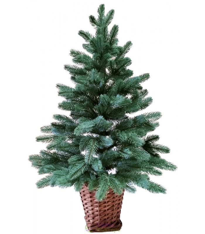 Ялина лита блакитна 90 см у горщику з лози - витончена різдвяна ялинка, яка ідеально підійде для прикрашання офісу, приймалень, барної стійки, адміністративної стійки (ресепшн), робочого столу. Ялинка відмінно впишеться в святковий інтер'єр невеликого приміщення. Також її можна використовувати в шкільних театральних постановках, на святранках у садочку, як оригінальний подарунок. Хвоя у ялинки середньо-блакитного кольору, м'яка, гнучка, виготовлена зі спеціального гіпоалергенного екопластику. Лита ялина своїм зовнішнім виглядом не поступається в красі натуральним деревам з карпатських лісів. А горщик з лози гармонійно доповнює природний образ моделі.