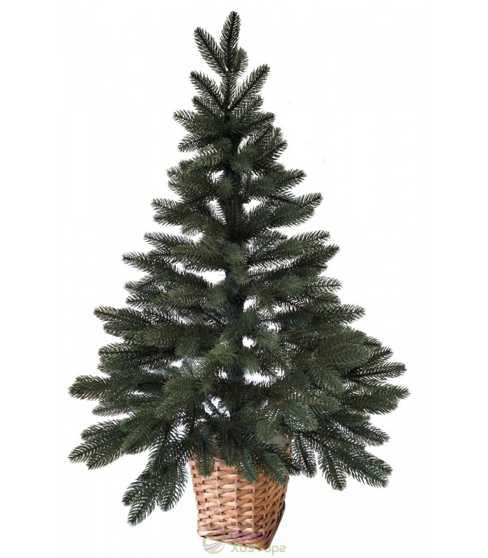 Ялина лита зелена 90 см у горщику з лози - витончена різдвяна ялинка, яка ідеально підійде для прикрашання офісу, приймалень, барної стійки, адміністративної стійки (ресепшн), робочого столу. Ялинка відмінно впишеться в святковий інтер'єр невеликого приміщення. Також її можна використовувати в шкільних театральних постановках, на святранках у садочку, як оригінальний подарунок. Хвоя у ялинки середньо-зеленого кольору, м'яка, гнучка, виготовлена зі спеціального гіпоалергенного екопластику. Лита ялина своїм зовнішнім виглядом не поступається в красі натуральним деревам з карпатських лісів. А горщик з лози гармонійно доповнює природний образ моделі.