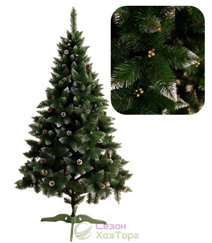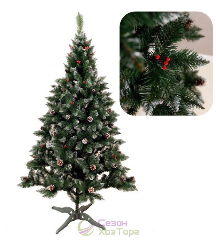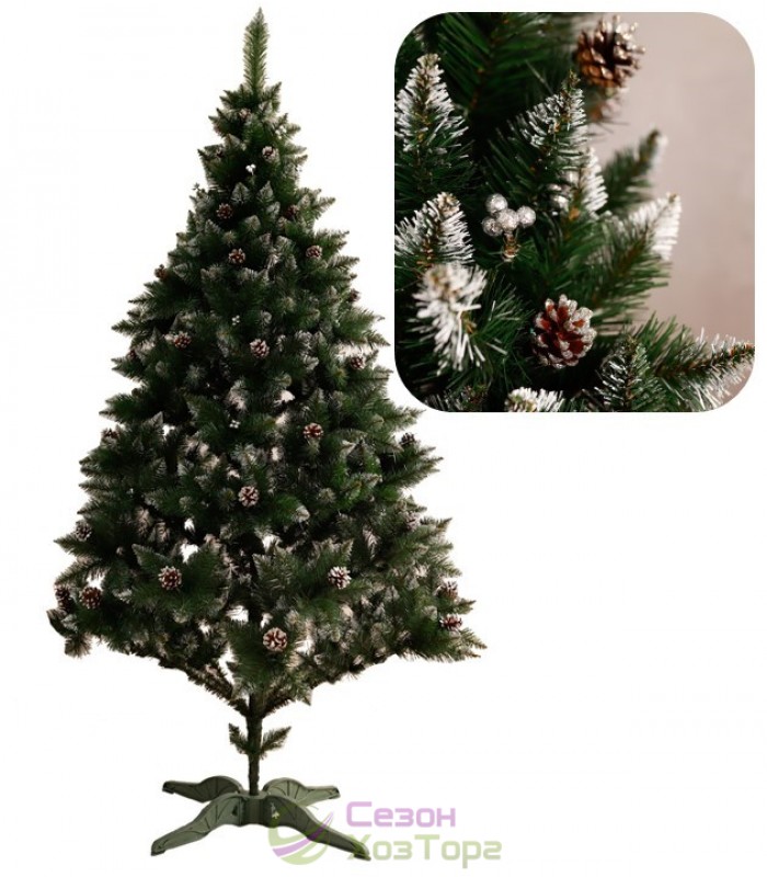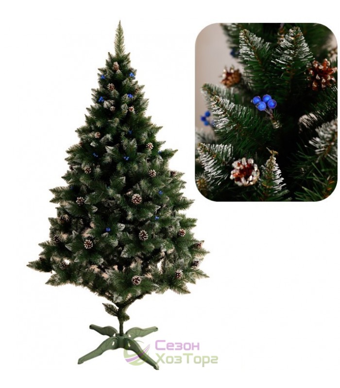 Ялина штучна Елітна з шишками та калиною 2,2 м з білим напиленням виготовлена відповідно до санітарно-епідеміологічних та гігієнічних вимог до продукції в Україні. Виготовлена із високоякісних матеріалів. Стовбур представлений розбірною трубкою, що складається з трьох частин, гілки складаються з дротяного каркаса, який відрізняється високою гнучкістю та міцністю. Голки виготовлені згідно з новими технологіями з ПВХ.