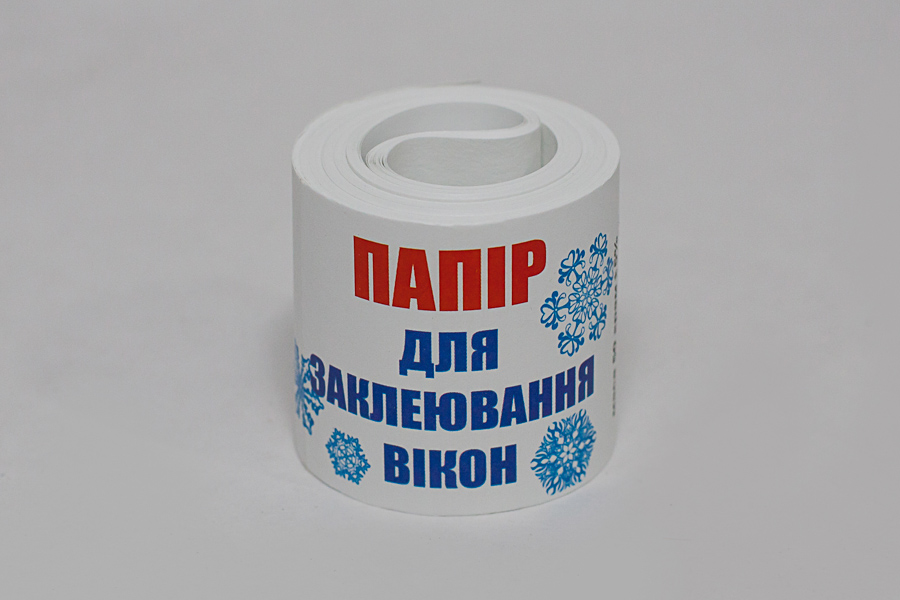 Бумага для оклейки окон представляет собой узкие полосы белой бумаги, хорошо воспринимающей клей. Необходимо выбирать бумагу с нормальной плотностью, для того чтобы она не рвалась при монтаже.